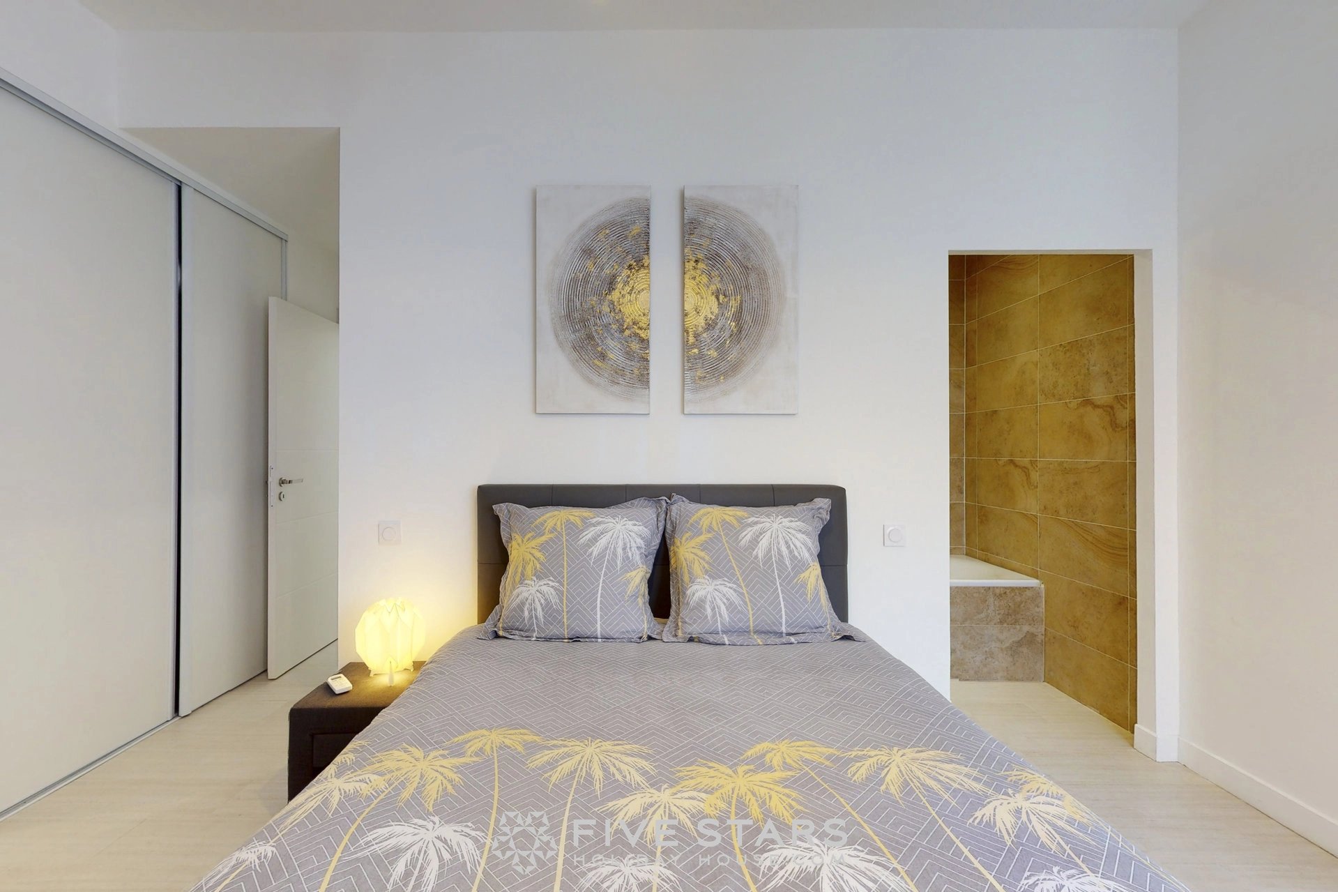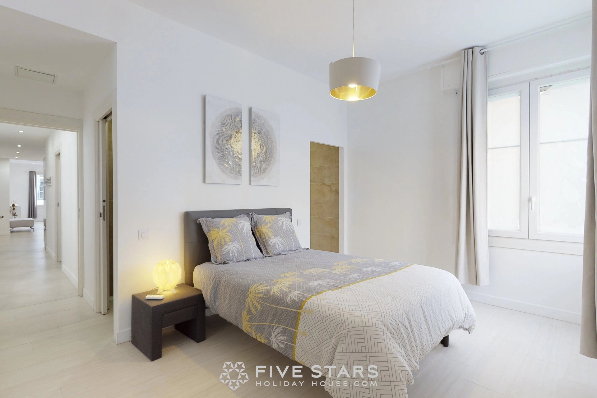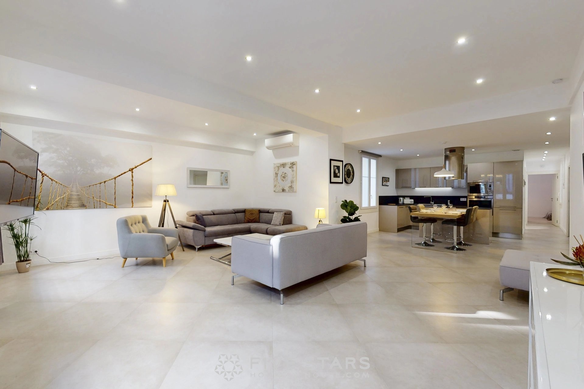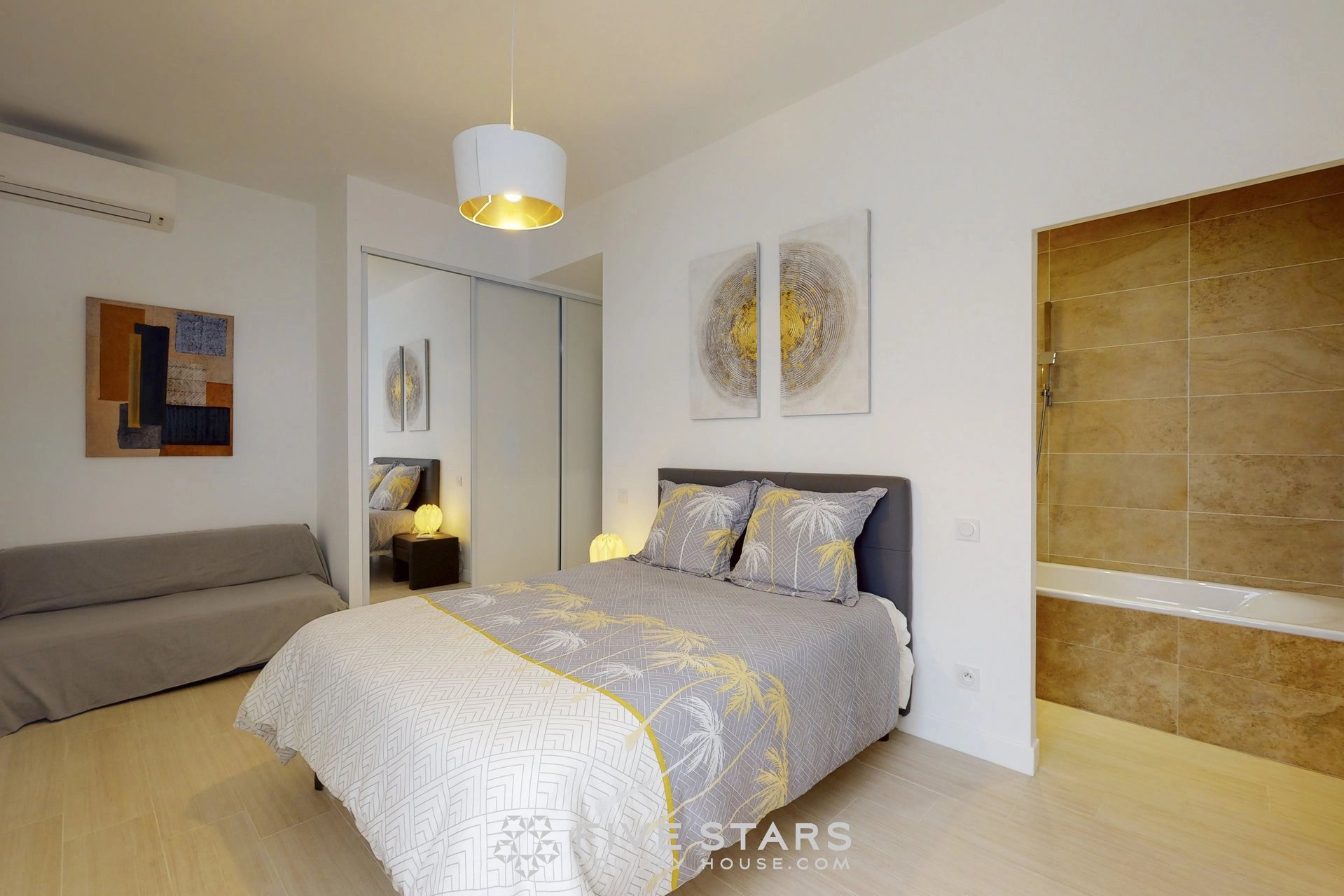 Il est composé d'un séjour avec cuisine américaine équipée, de deux chambres dont une avec salle d'eau toilette et l'autre salle de bains toilette, ainsi que d'une toilette privative.