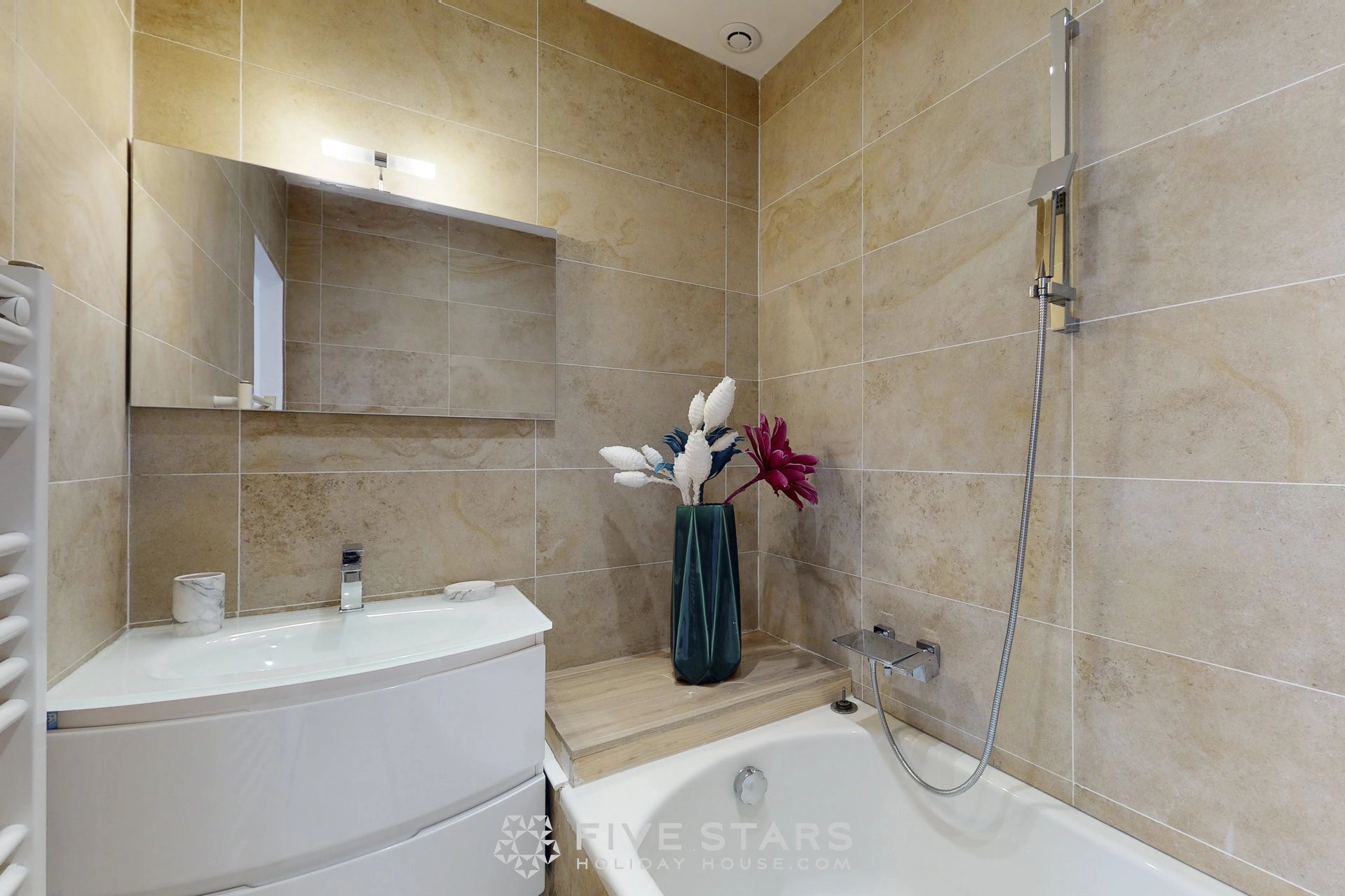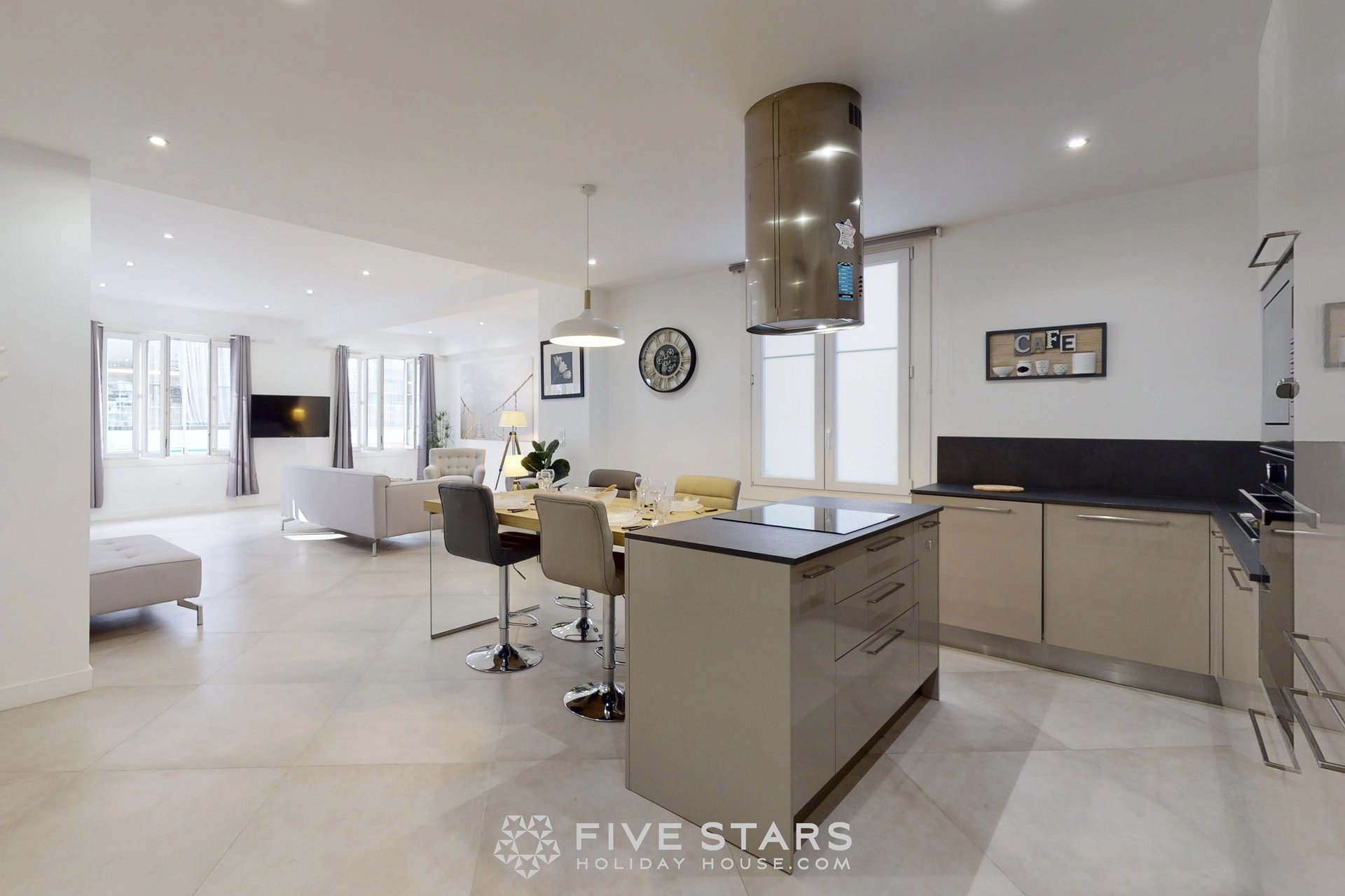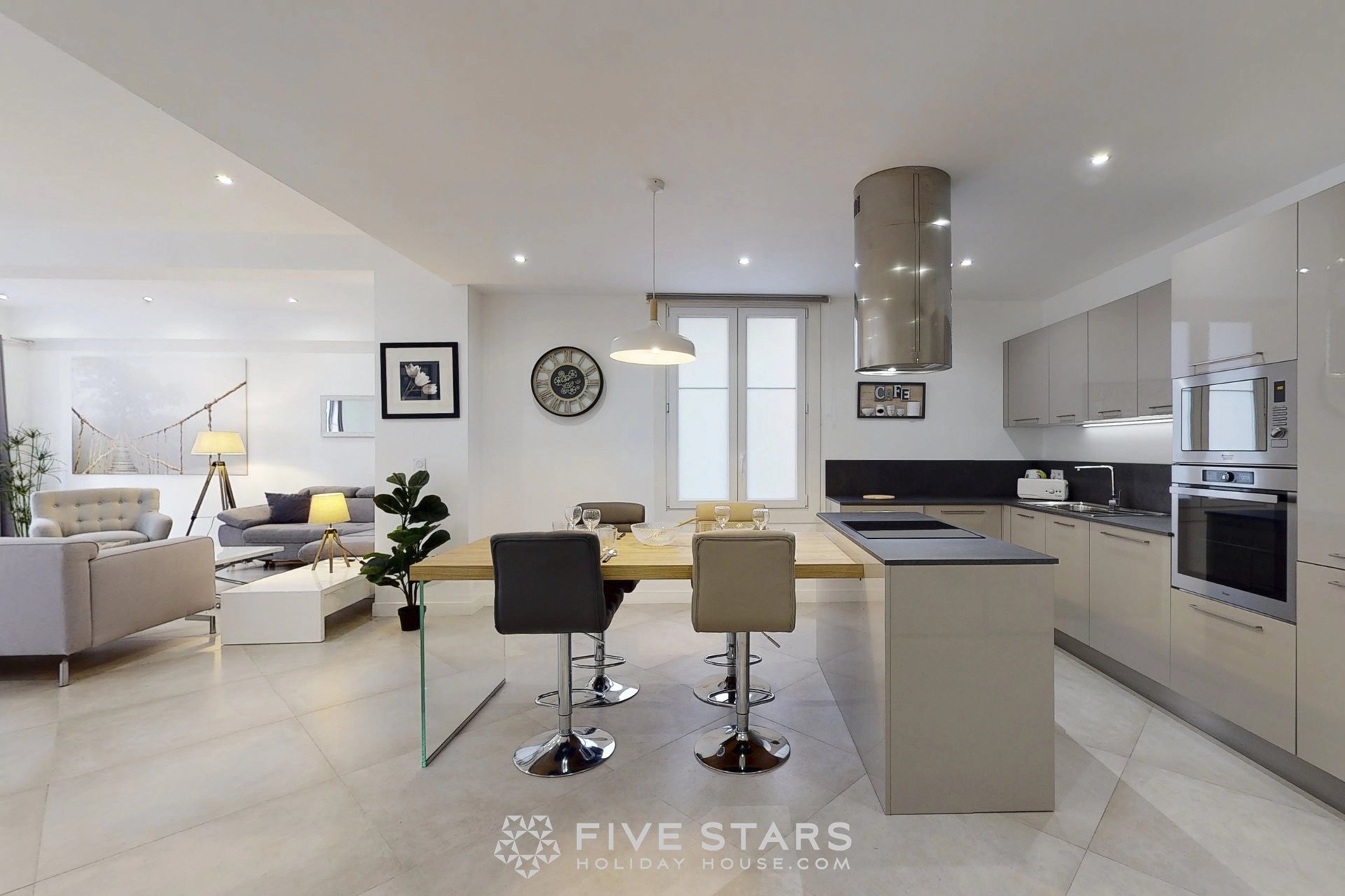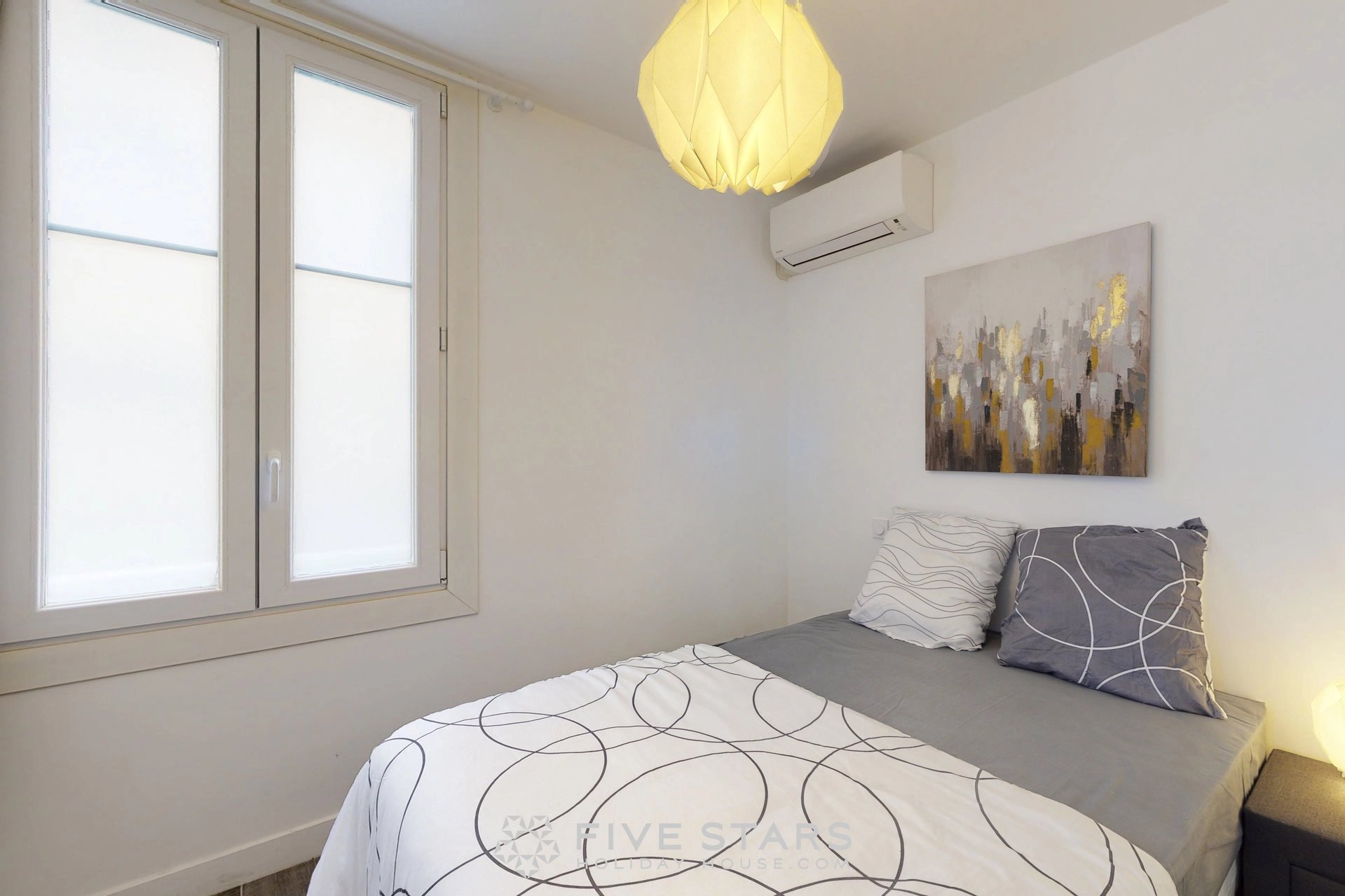 Il est composé d'un séjour avec cuisine américaine équipée, de deux chambres dont une avec salle d'eau toilette et l'autre salle de bains toilette, ainsi que d'une toilette privative.