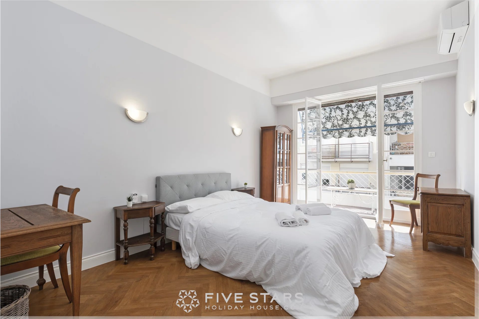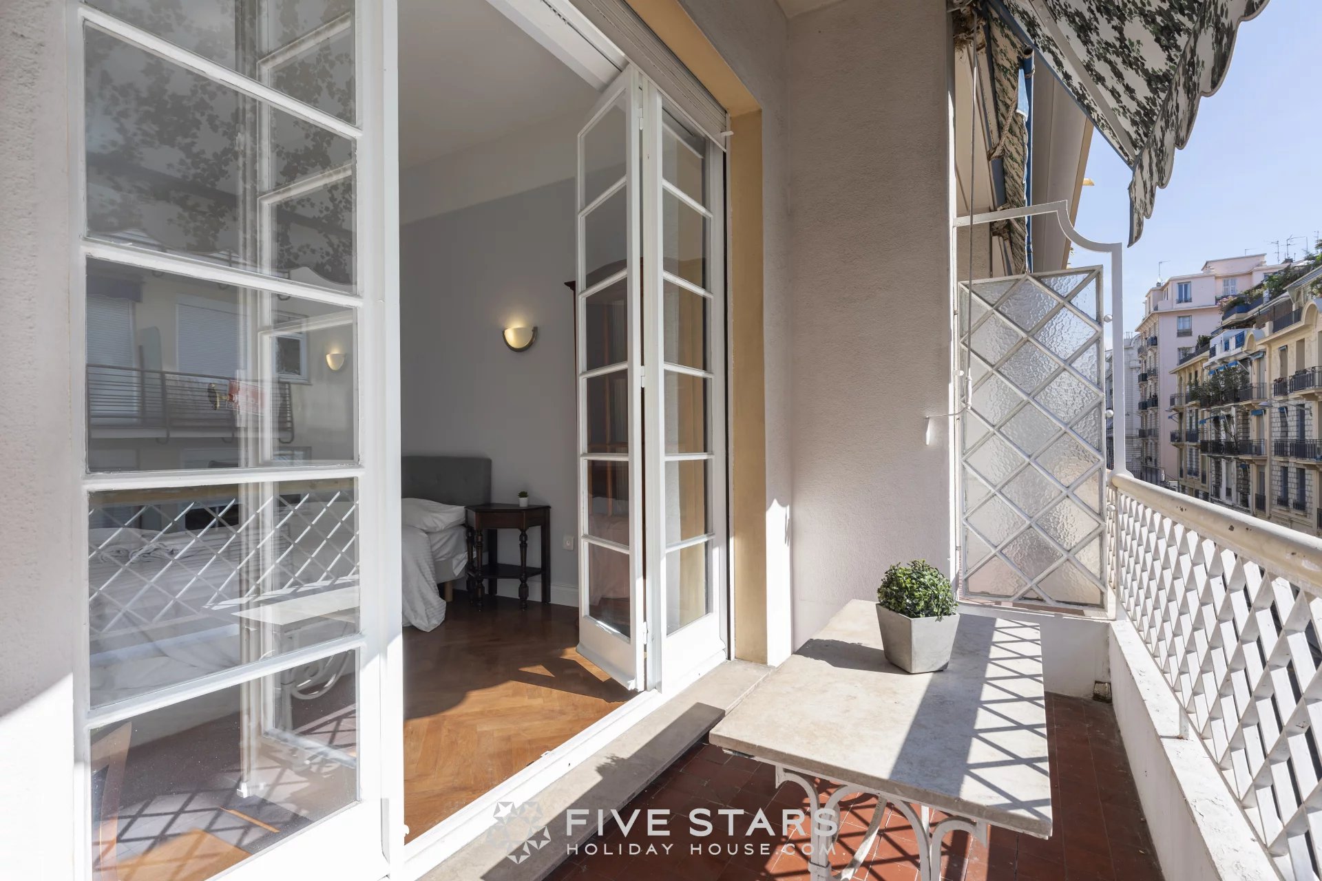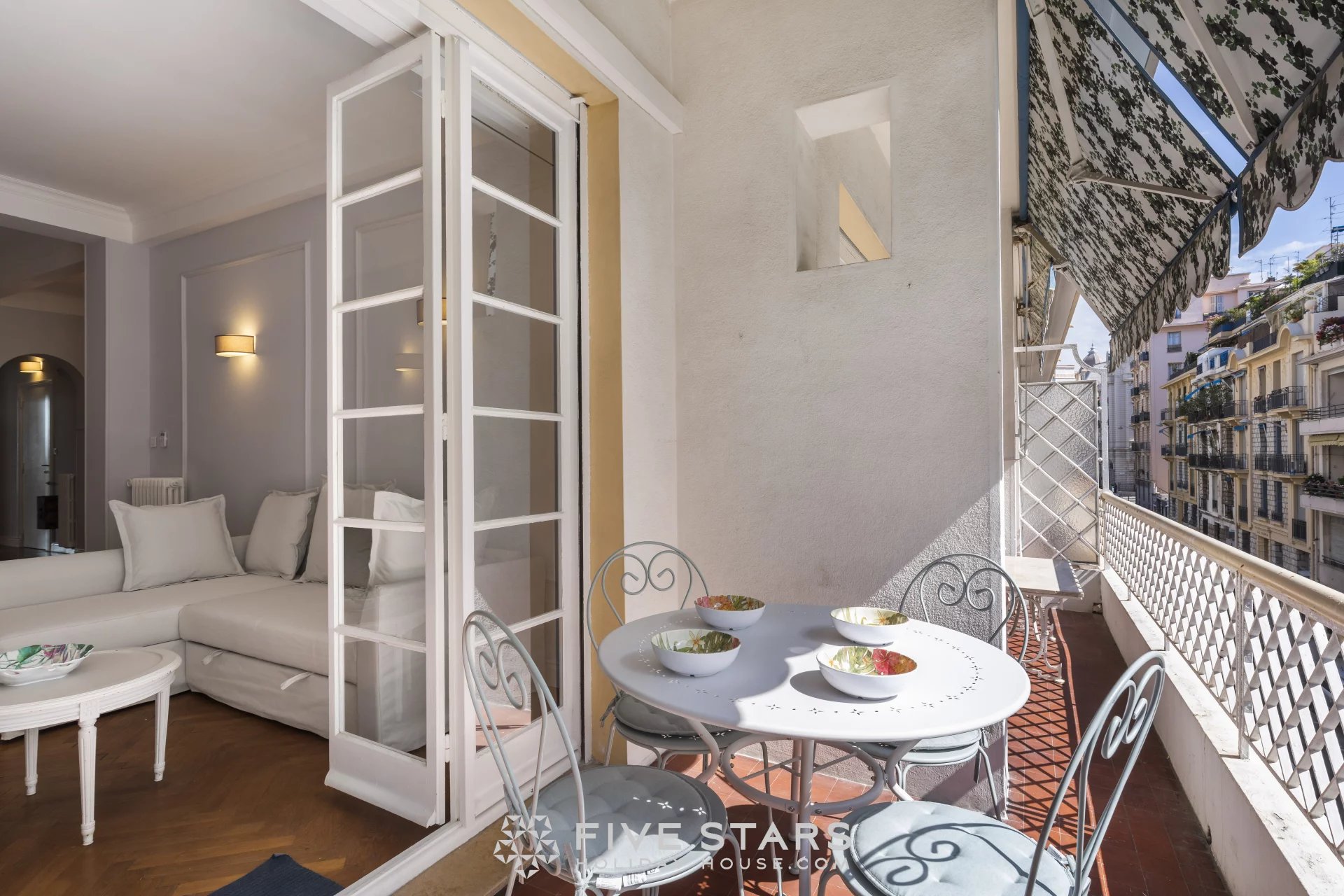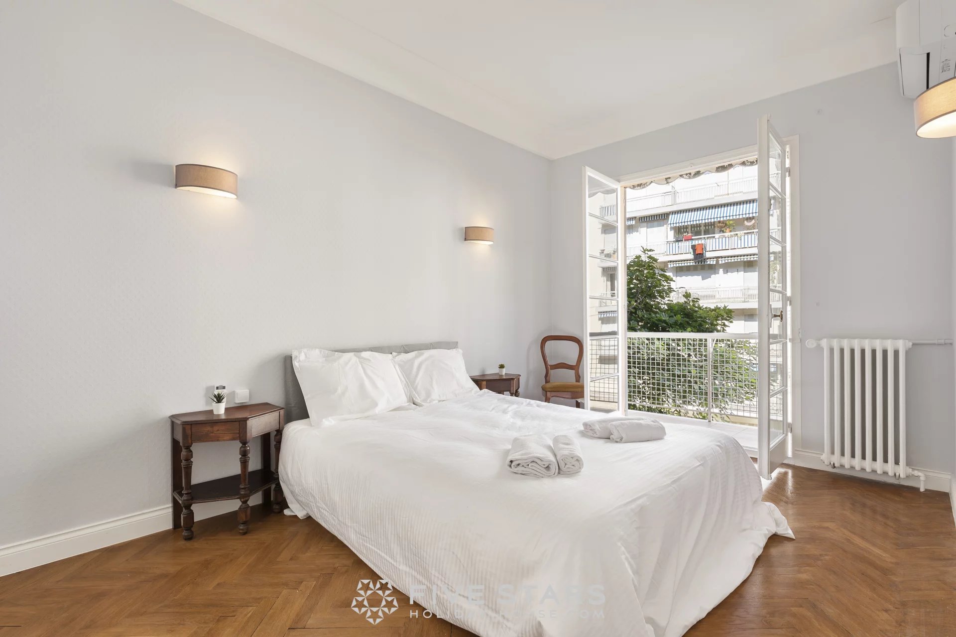 Cet appartement de 93 mètres carrés avec deux chambres à coucher est situé dans le quartier des Musiciens à Nice, dans la rue Herold. L'annonce précise qu'il est sobrement élégant et meublé avec goût. Il offre un grand espace de vie avec des plafonds très hauts, ce qui ajoute une sensation de grandeur. L'appartement est également équipé de la climatisation pour un confort optimal. Il dispose de deux balcons exposés à l'est et à l'ouest, ainsi que de deux chambres à coucher et d'une grande cuisine avec balcon. Vous y trouverez également un grand salon. L'appartement est situé dans un immeuble des années 70 et est proche de l'arrêt de tramway, de la gare et à quelques pas de la promenade. Avec sa localisation dans le quartier des Musiciens, connu pour sa tranquillité et sa proximité avec les commodités, cet appartement offre un cadre de vie idéal à Nice.