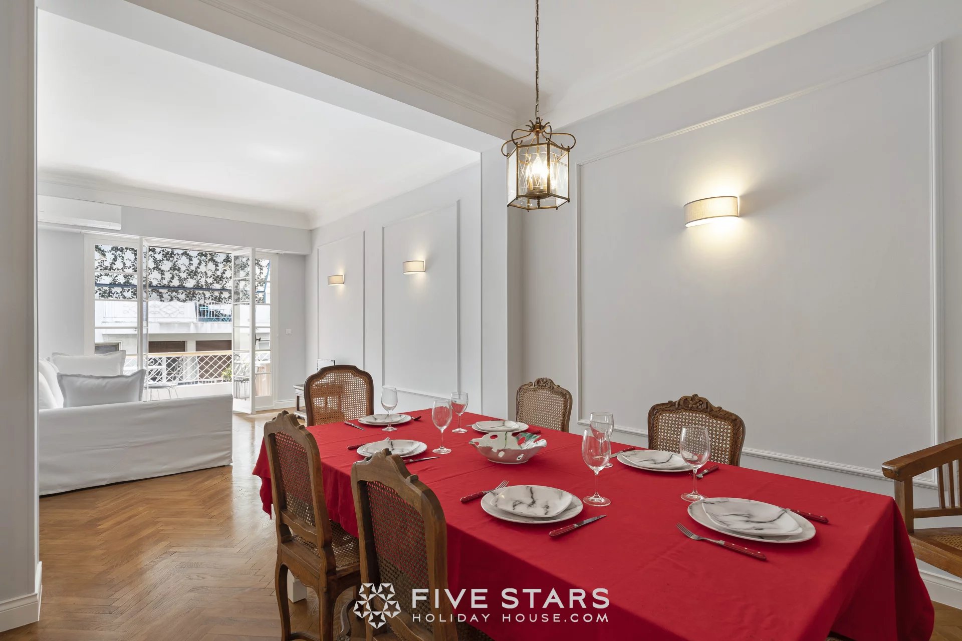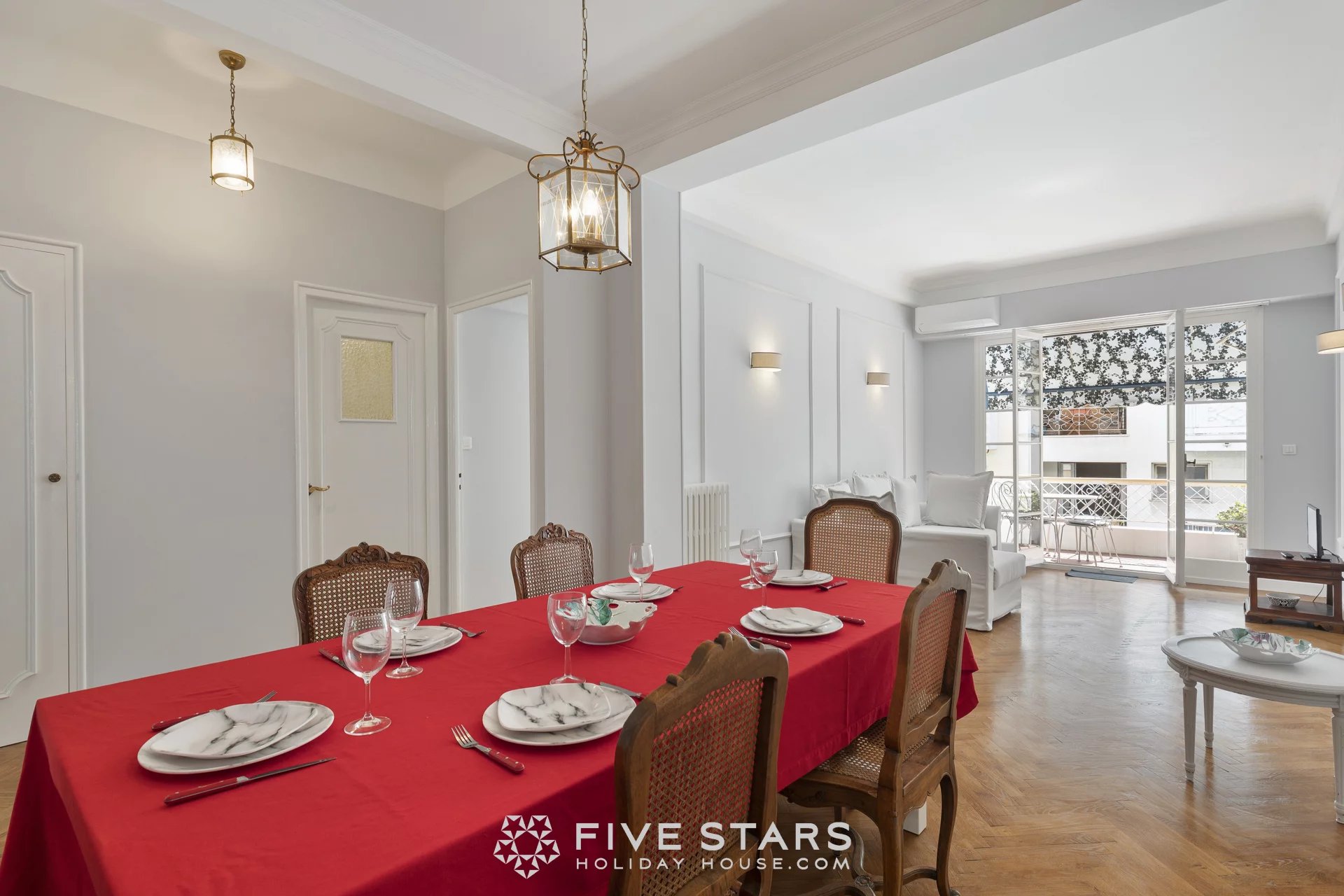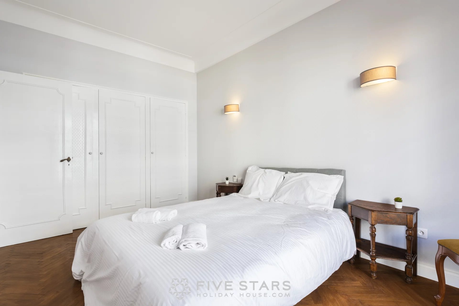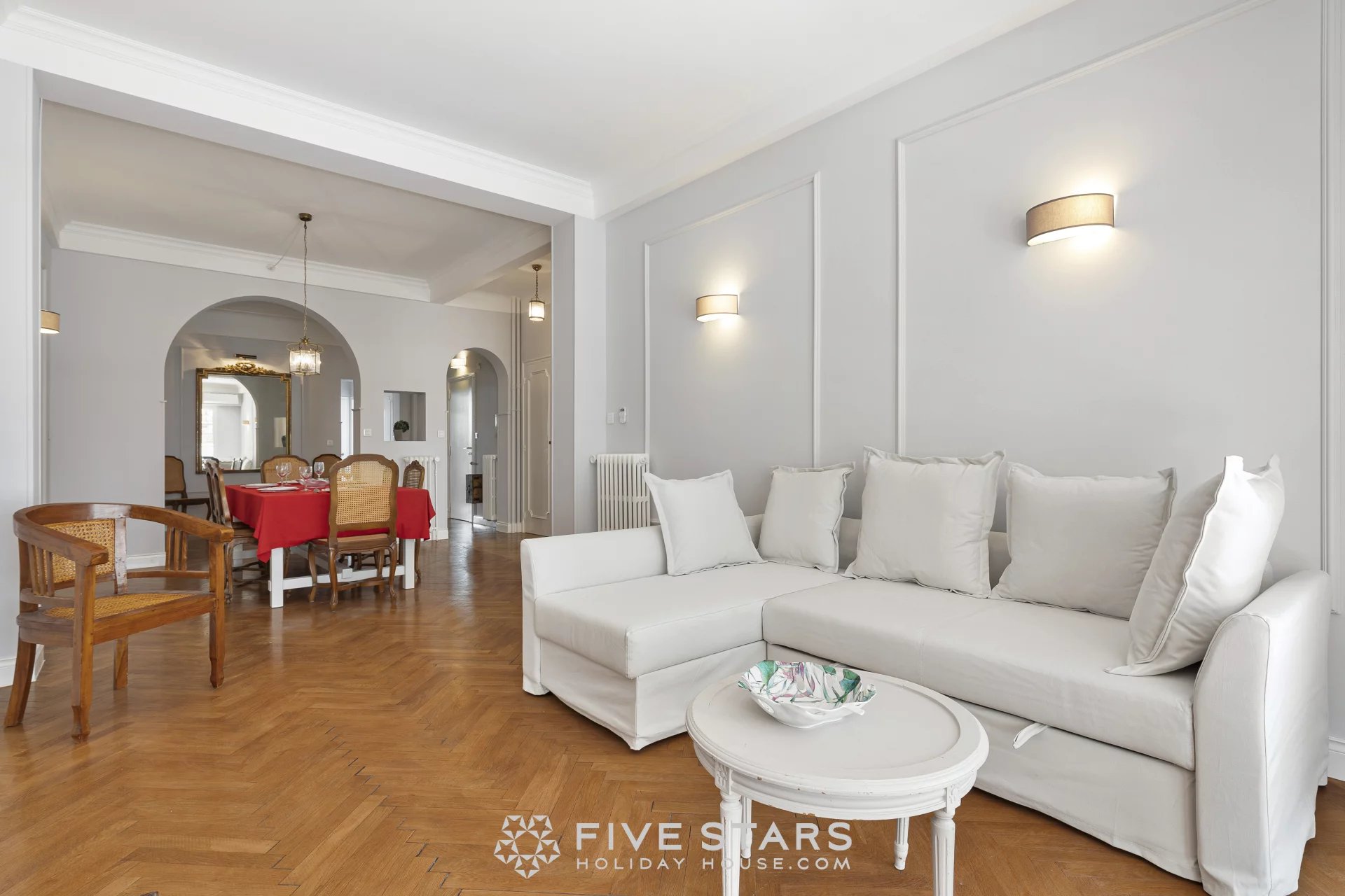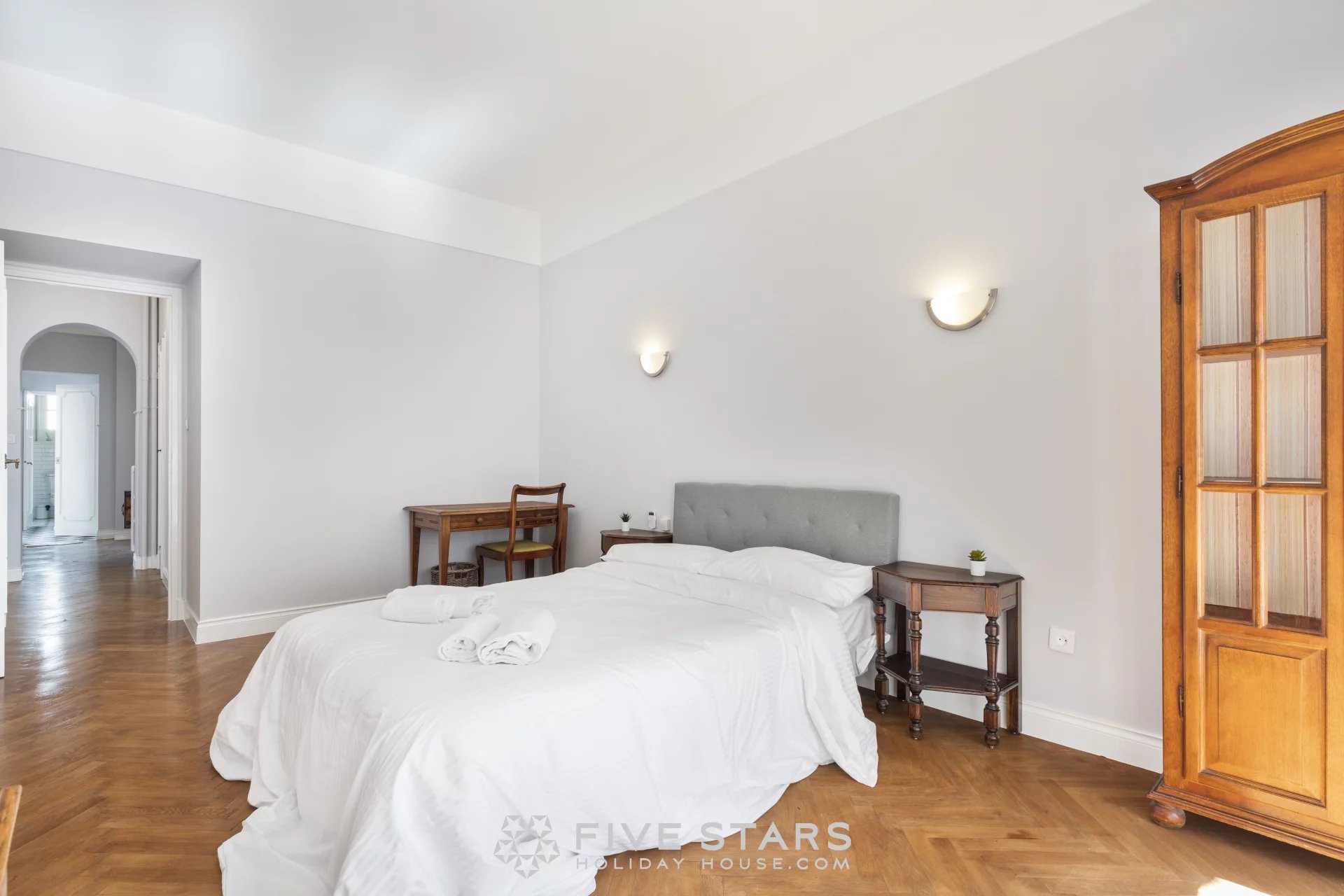 Cet appartement de 93 mètres carrés avec deux chambres à coucher est situé dans le quartier des Musiciens à Nice, dans la rue Herold. L'annonce précise qu'il est sobrement élégant et meublé avec goût. Il offre un grand espace de vie avec des plafonds très hauts, ce qui ajoute une sensation de grandeur. L'appartement est également équipé de la climatisation pour un confort optimal. Il dispose de deux balcons exposés à l'est et à l'ouest, ainsi que de deux chambres à coucher et d'une grande cuisine avec balcon. Vous y trouverez également un grand salon. L'appartement est situé dans un immeuble des années 70 et est proche de l'arrêt de tramway, de la gare et à quelques pas de la promenade. Avec sa localisation dans le quartier des Musiciens, connu pour sa tranquillité et sa proximité avec les commodités, cet appartement offre un cadre de vie idéal à Nice.